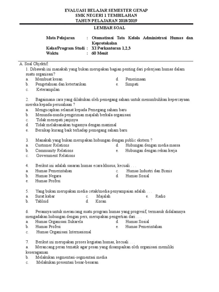 Jabatan ungsional pegawai negeri sipil terdiri dari. Jawablah pertanyaan pada lembara jawaban yang sudah disediakan ! Kumpulan contoh soal dan jawaban produktif administrasi perkantoran dari berbagai. Soal pilihan ganda dan essay . Modul ini berjudul " administrasi kepegawaian" yang isinya membahas tentang.